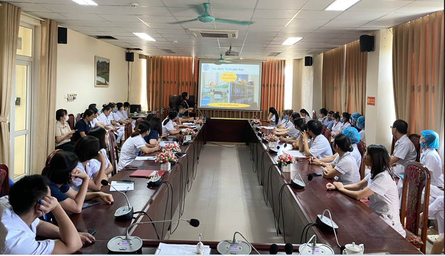 Lớp tập huấn có sự tham gia của BSCKII Bùi Đức Tiệp- Phó giám đốc bệnh viện; trưởng/phó các khoa/phòng cùng đông đảo cán bộ y tế đang công tác tại Bệnh viện.